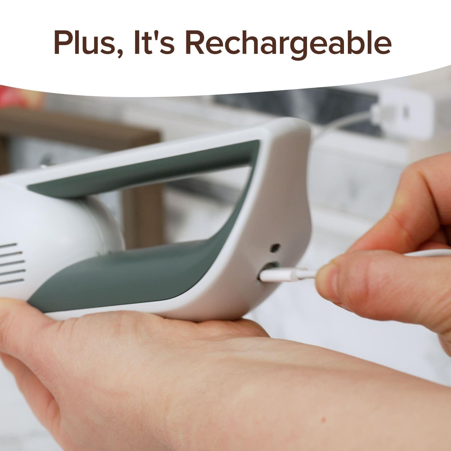 The cordless design and rechargeable battery make it easy to use anywhere, without the hassle of cords.